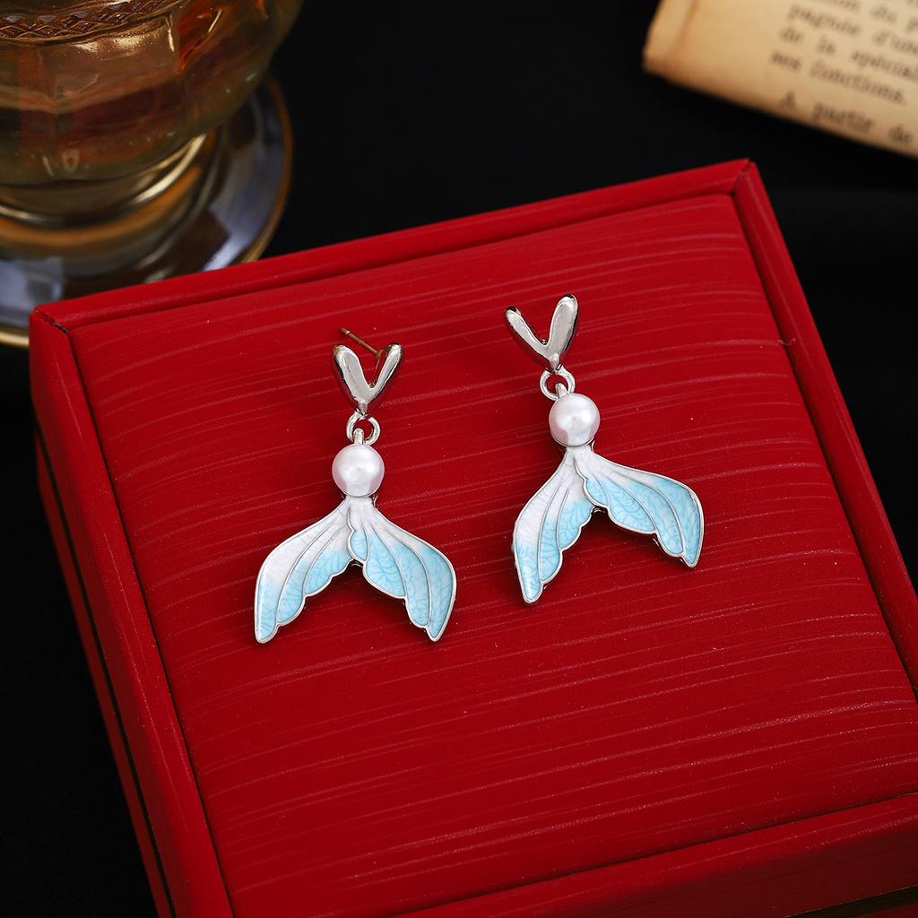 Ocean Dolphin Fishtail Pearl Earrings, Light Luxury And Exquisite Blue Small Fresh And Cute Temperament Earrings Women