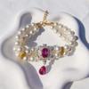 1pc Luxury Double Layer Pearl Pet Necklace with Diamond Pendant Wedding Costume Dog Cat Crystal Jewelry Accessories Pet Supplies