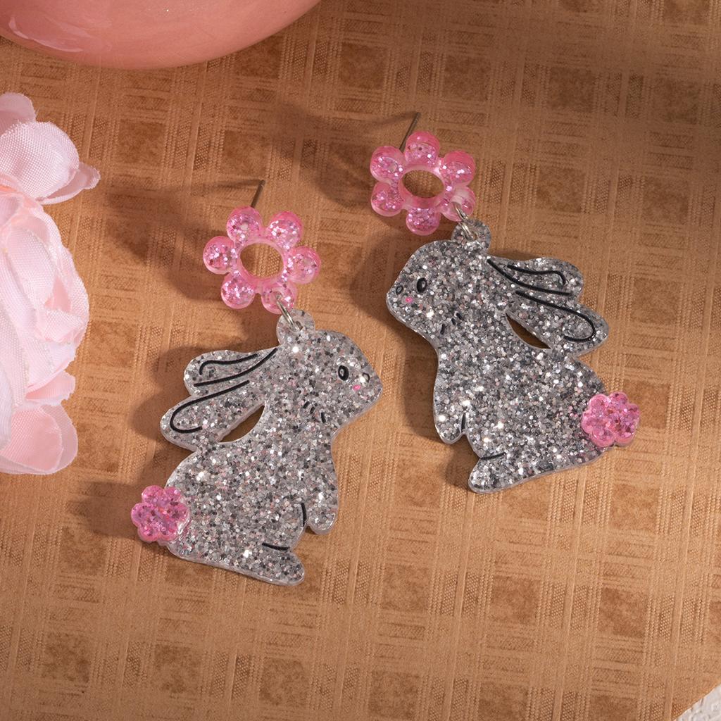 Creative Design Sense Fine Flash Cute Rabbit Acrylic Earrings, Light Luxury High-End Cartoon Fashion Earrings