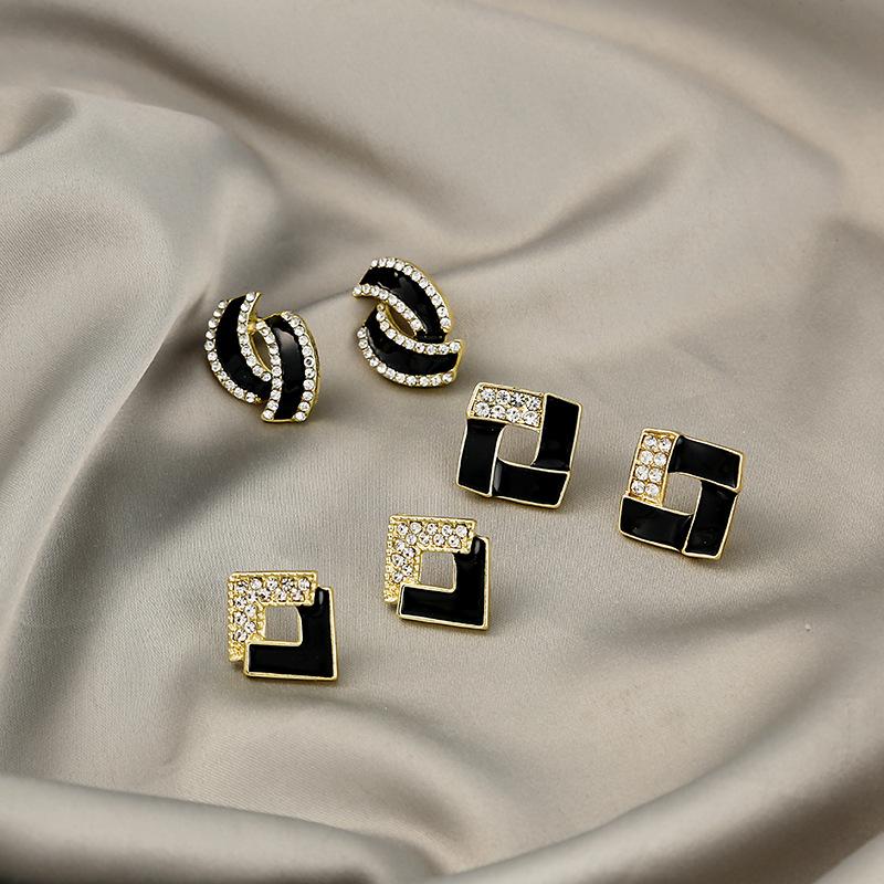 Geometric Dark Cold Wind Creative Design Stud Earrings Slightly Inlaid Zircon Luxury Temperament Dignified Earrings Earrings