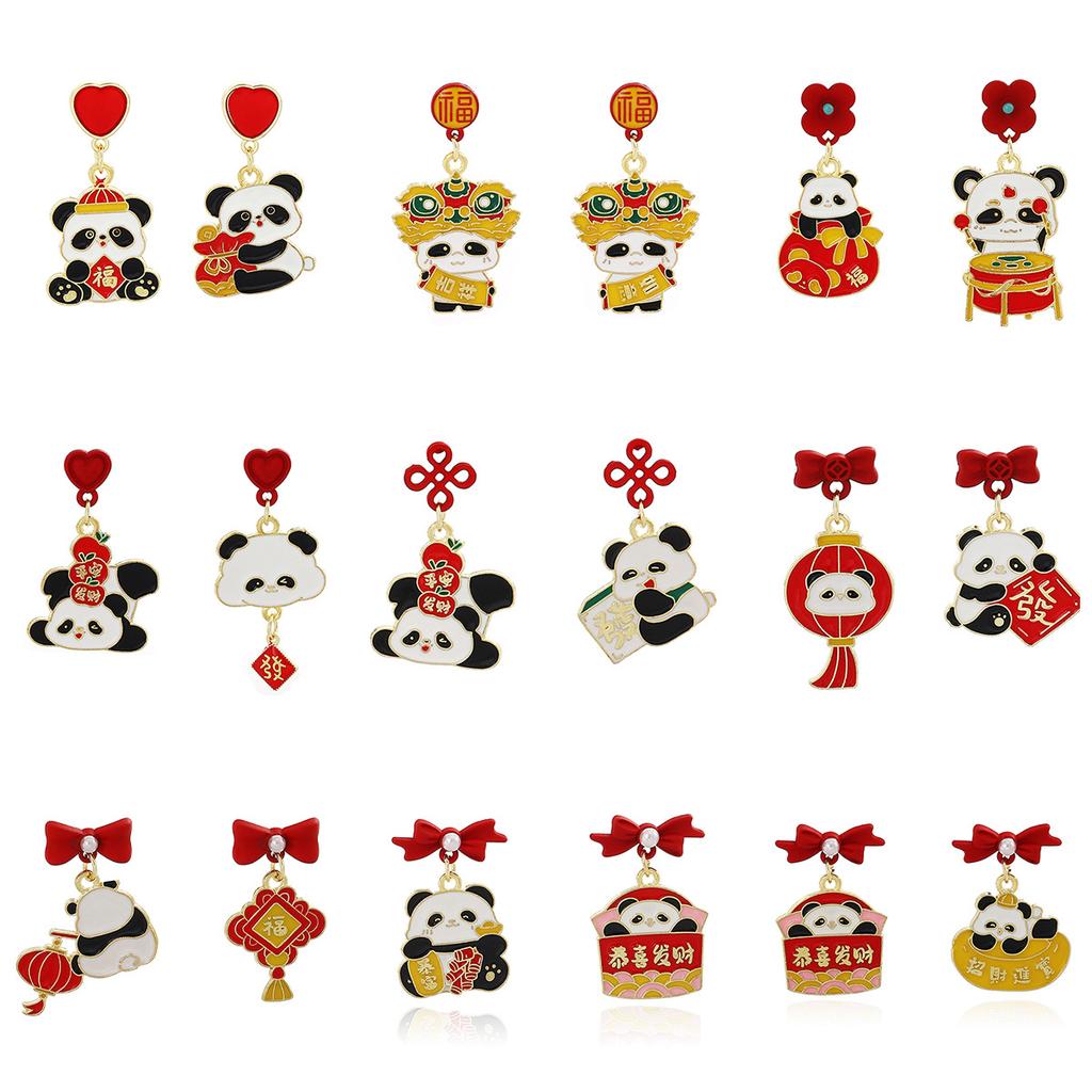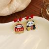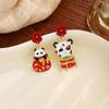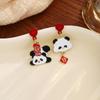 New Year'S Chinese Knot Lantern Cute Panda Earrings, Chinese Style Gong Xi Fa Cai Lucky Bag Pearl Earrings Women