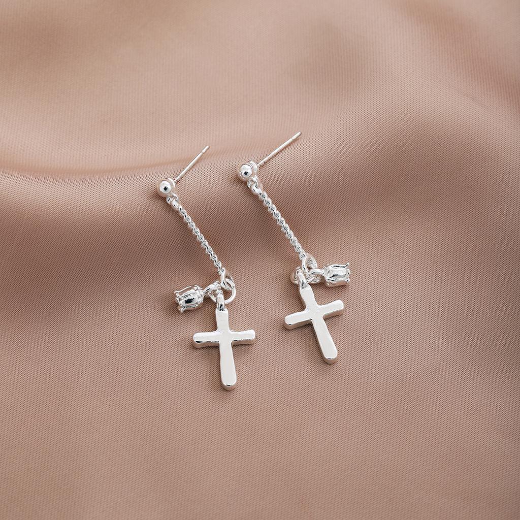 Personalized Chain Cross Diamond Stud Earrings, Light Luxury High Sense Simple Earrings Women