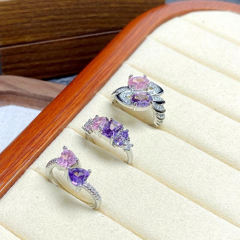 [Twin Crystal Love] Pink Purple Full Diamond Zir*****Pening Ring Niche Light Luxury High Sense Sweet Treasure Ring Girl