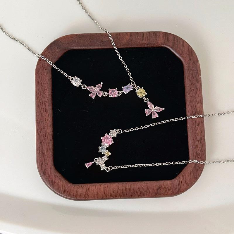 Sweet Butterfly Niche Design Colored Diamond Collarbone Chain Exquisite High-End Elegant Women'S Fashion Light Luxury Neck Chain Shining Necklace