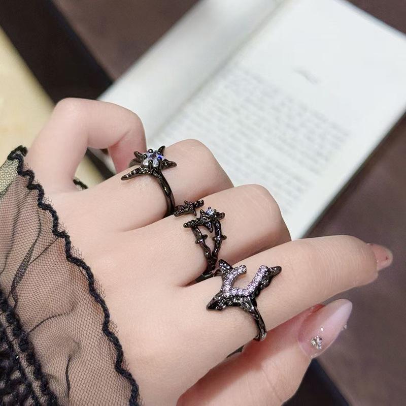Dark Tide Cool Personality Full Diamond Zircon Irregular Star Opening Ring Niche Premium Sense Stacked Index Finger Ring Female