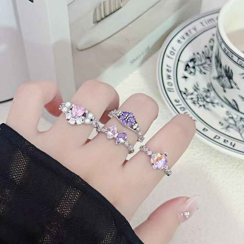 Irregular Color Butterfly Pink Zir*****Pen Ring Personality Niche Design Advanced Sense Love Stacked Ring Woman
