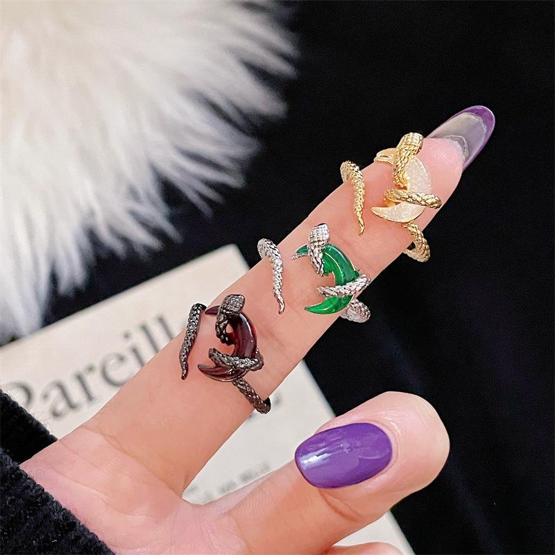 Original Design Niche Personality Snake Open Ring Retro High Sense Moonstone Light Luxury Vintage Accessories