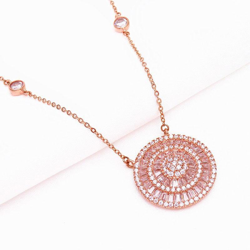 Purple Gold Pure Zircon Round Brand Pendant Rose Gold Plated Fashion Trend Necklace Collarbone Chain