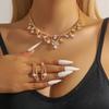 Fashion Claw Chain Rhinestone Necklace Bracelet Earrings Set Dinner Dress Collarbone Chain Necklace Women