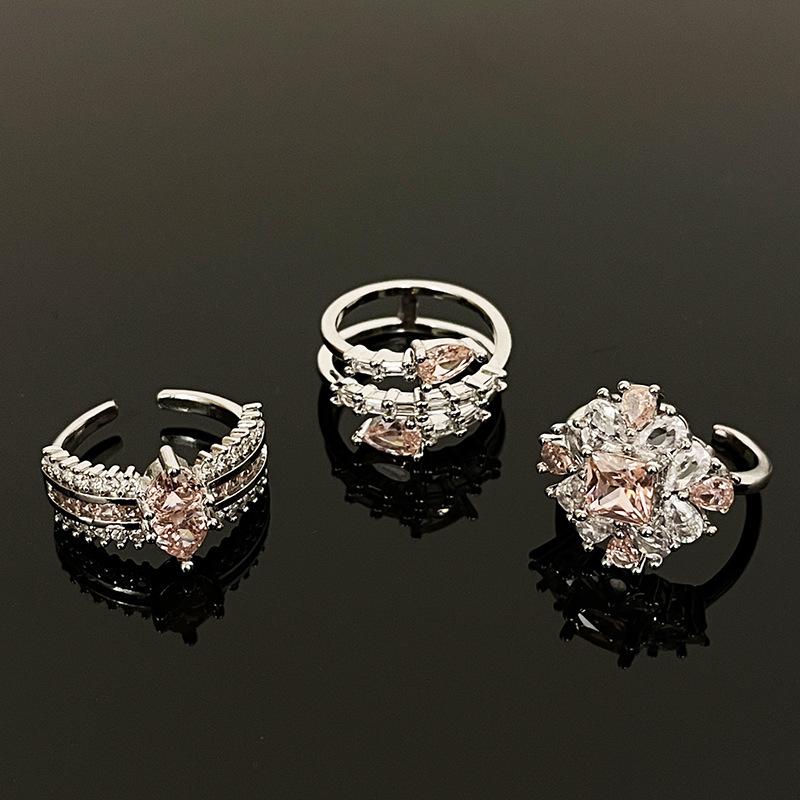 Niche Design Pear-Shaped Pink Zircon Multi-Layer Snake-Shaped Sweet And Cool Personality Open Ring Women'S Light Luxury High-End Ring