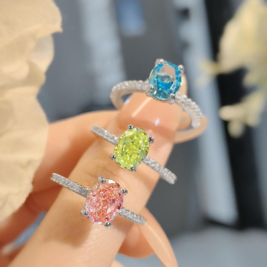 Fashion Light Luxury Pigeon Egg Ice Flower Cut Ice Sea Blue Ring Simple Paparacha High Carbon Diamond Apple Green Ring Women