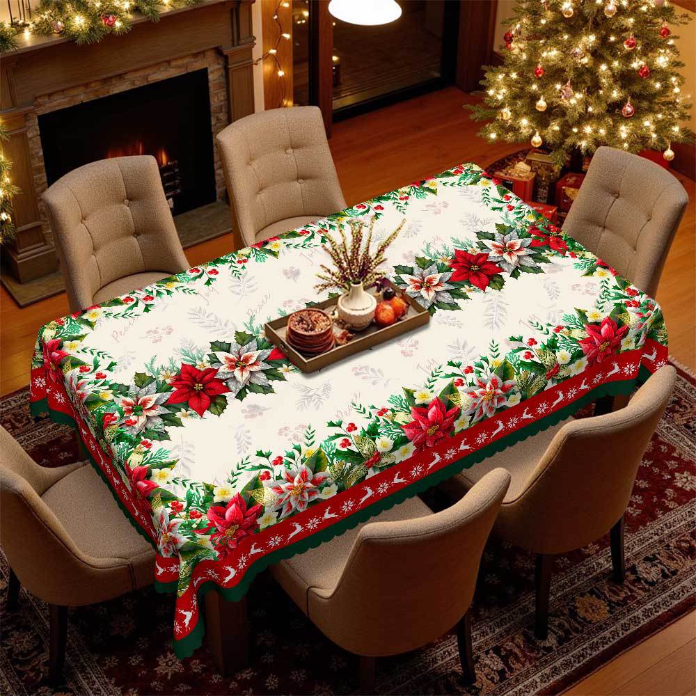 Christmas Table Decoration, Red And Green Flowers, Birds, Elk Tablecloth, Wavy Edge Round Table Square Table Universal Home Holiday Decoration