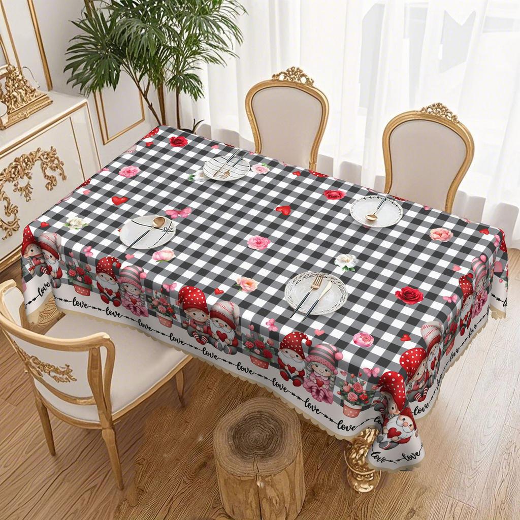 Cartoon Dwarf Plaid Shading Love Flower Round Tablecloth, Romantic Household Table Cloth, Restaurant Decoration