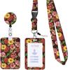 Colorful Flower Printed ID Badge Holder With Lanyard Double Sided Uv Printing Card Sleeve With