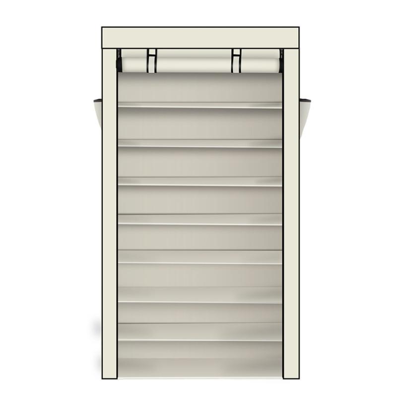 This 10-tier Dustproof Shoe Rack is designed to provide a great storage solution for your collection of favorite footwear. It is constructed out of metal pipes, non-woven fabrics and plastic connectors, so it can hold numerous pairs of shoes. This innovative, lightweight space saving shoe rack can be placed in a cubby closet, mudroom or busy entryway to keep shoes or accessories accessible.