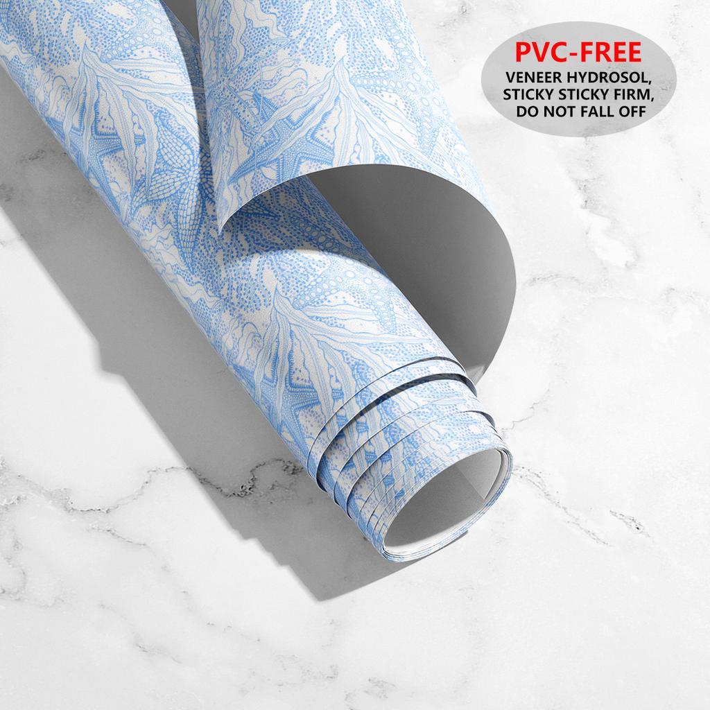 Ocean Peel and Stick Wallpaper White Blue Coral Starfish Contact Paper Self Adhesive Removable Coastal Wallpaper for Bathroom