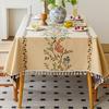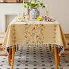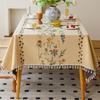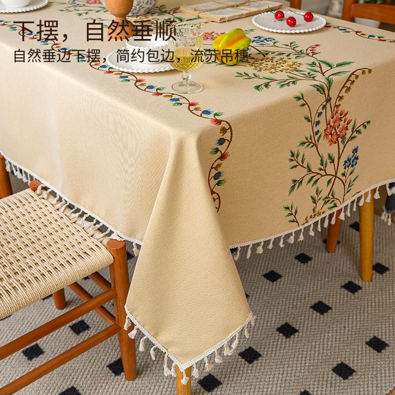 Cotton And Linen Tablecloth Light Luxury High Sense Apricot Green Branch Embroidery French Retro Rectangular Tablecloth Dining Table Round Table
