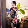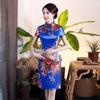 Women Dress Stand Collar Satin Cheongsam Dress For Daily Banquet Costumes