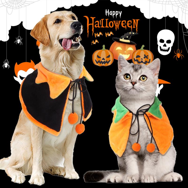 Pet Pumpkin Plush Cape Double Sided Drawstring Adjustable Cat Dog Funny Cute Halloween Costume Fancy