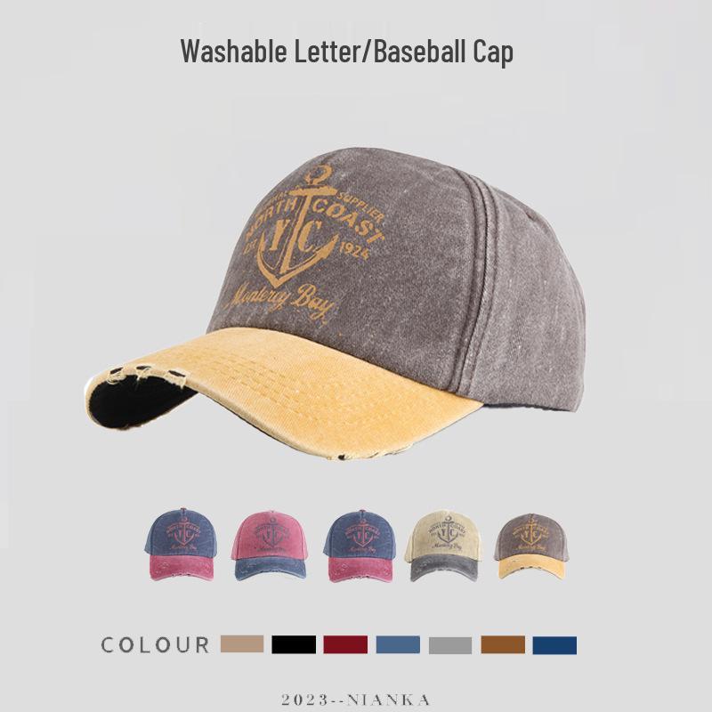 Vintage American Lettering Baseball Cap with Sun Protection In Washed Style