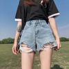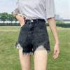 Classic and Minimalist Fashion Versatile Black Women's High-waisted Loose Summer Broken Holes Thin Burlap Wide-legged Son Denim Shorts Individuality