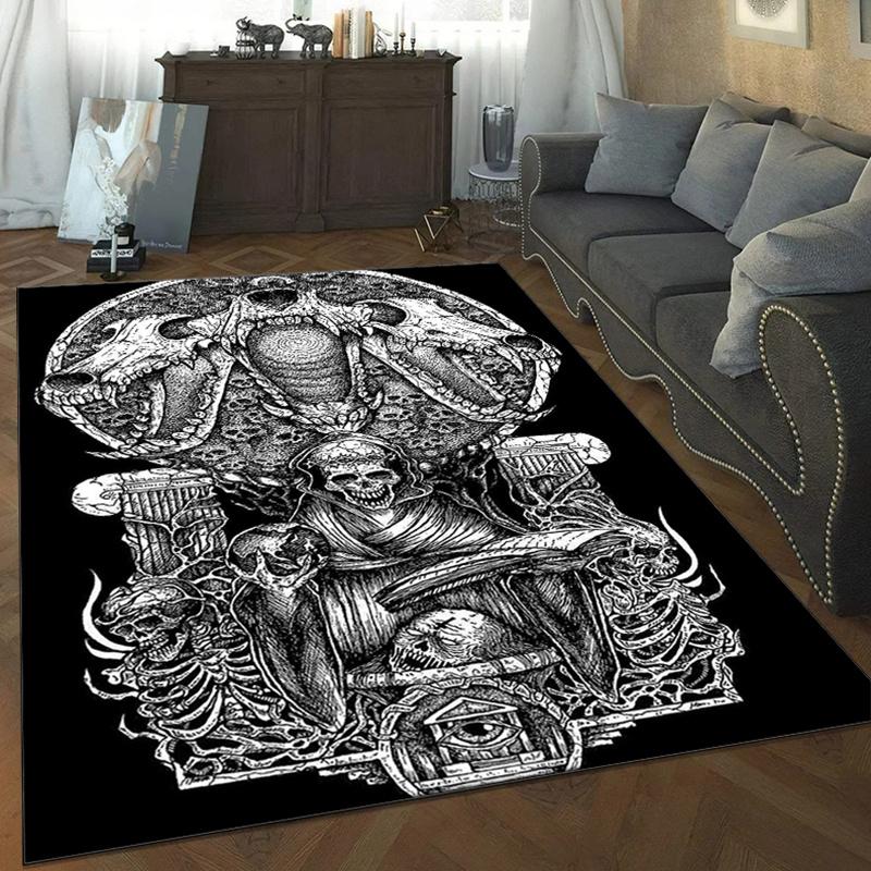 Monochrome Dragon Skull Rug for Fantasy Lovers | Detailed Skeleton Art Carpet | Gothic Home Decor Skid Resistant Carpet
