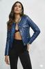 Women's Blue Leather Stylish Genuine Casual Lambskin Handmade Motorcycle Jacket