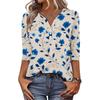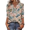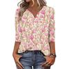 Women's Fashionable Casual Retro Floral Print V-Neck Button-Down Three-Quarter Sleeve T-Shirt Top