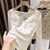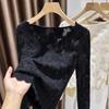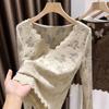 Brushed Lace Long-sleeved Bottoming Women's Autumn and Winter New V-neck High-end Soft Waxy Slim Inner T-shirt Top