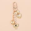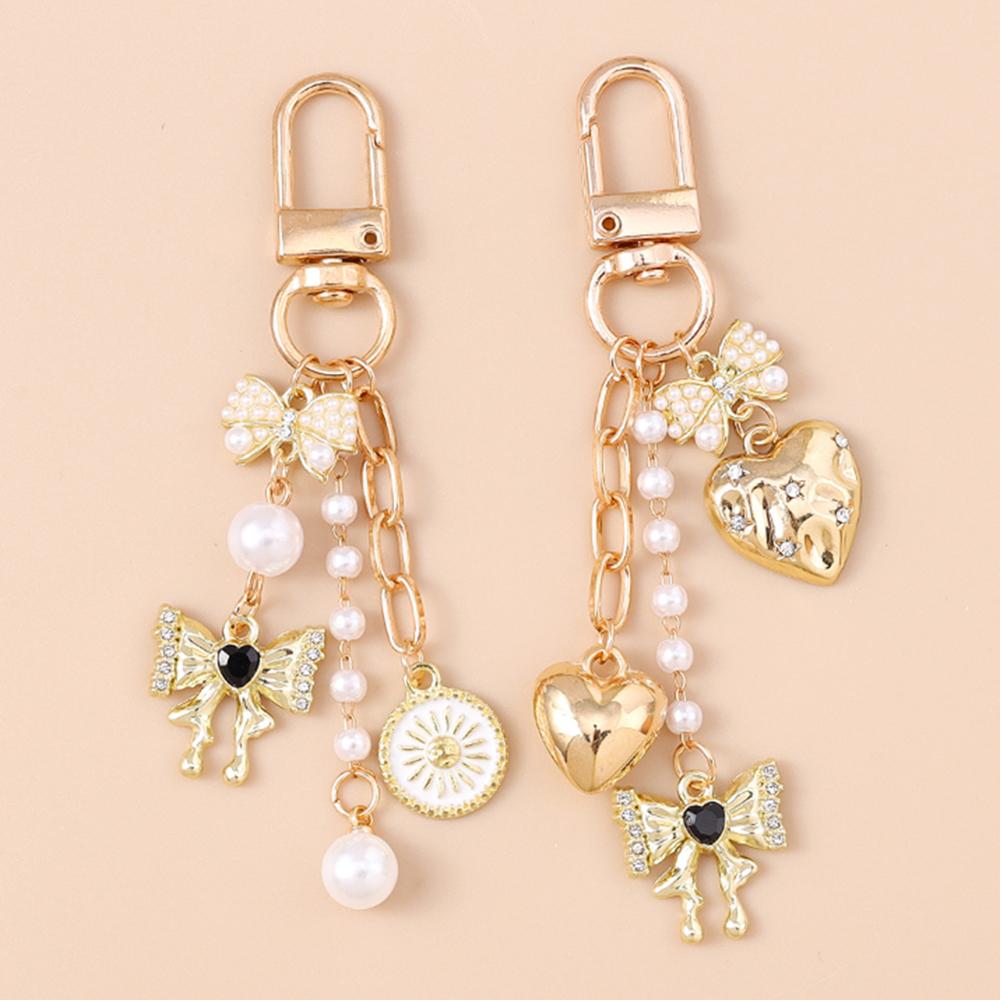 Fashion Pearl Bowknot Keychain Women Girls Love Heart Key Ring Pendants for Handbag Decor DIY Handmade Jewelry Gifts