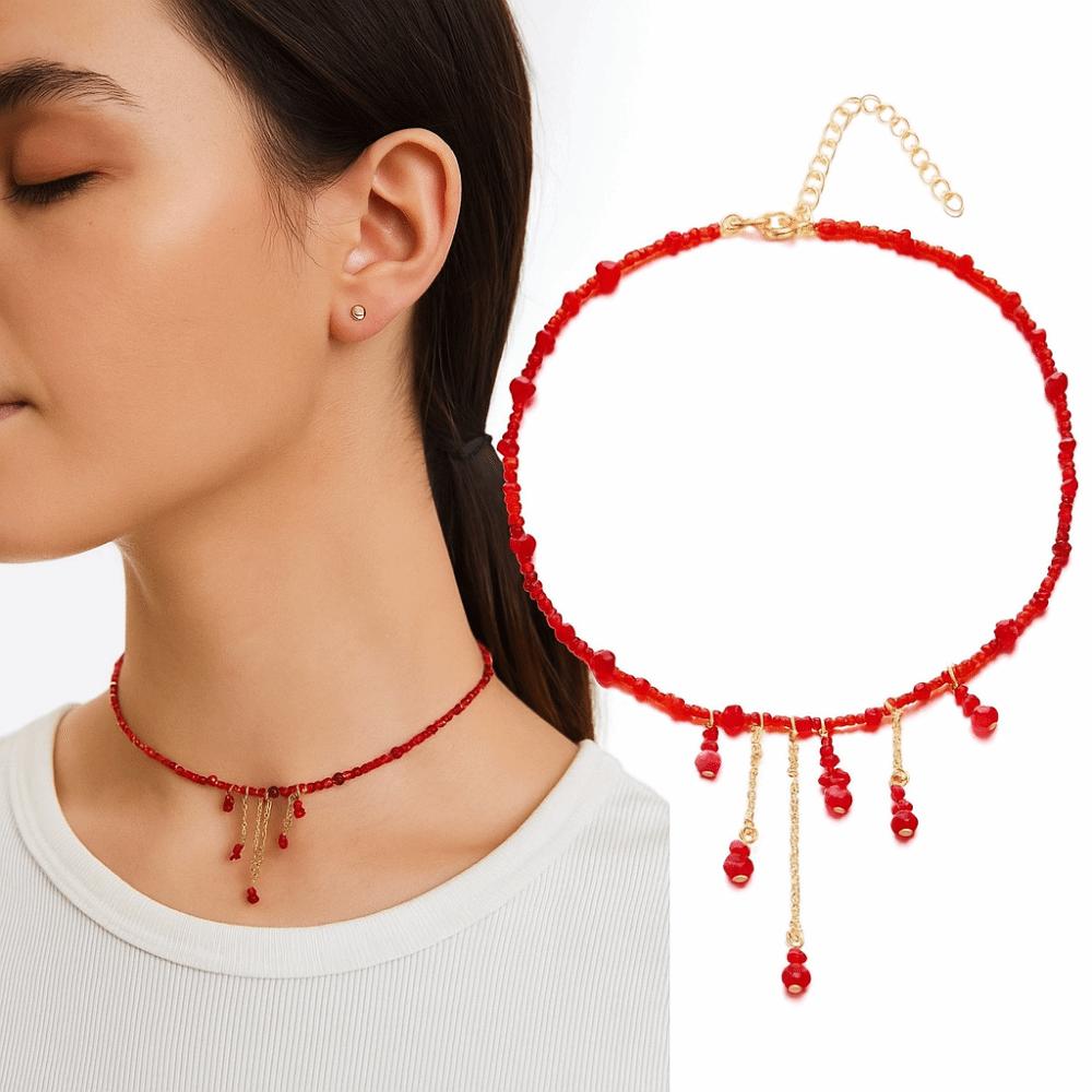 Red Blood Drop Necklace Tassel Halloween Choker Fashion Halloween Collarbone Chain Girl