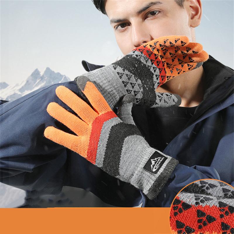 1 Pair Of Knitted Gloves Touch Screen Thicken Warm Wool Cashmere Gloves For Outdoor Hiking Cycling