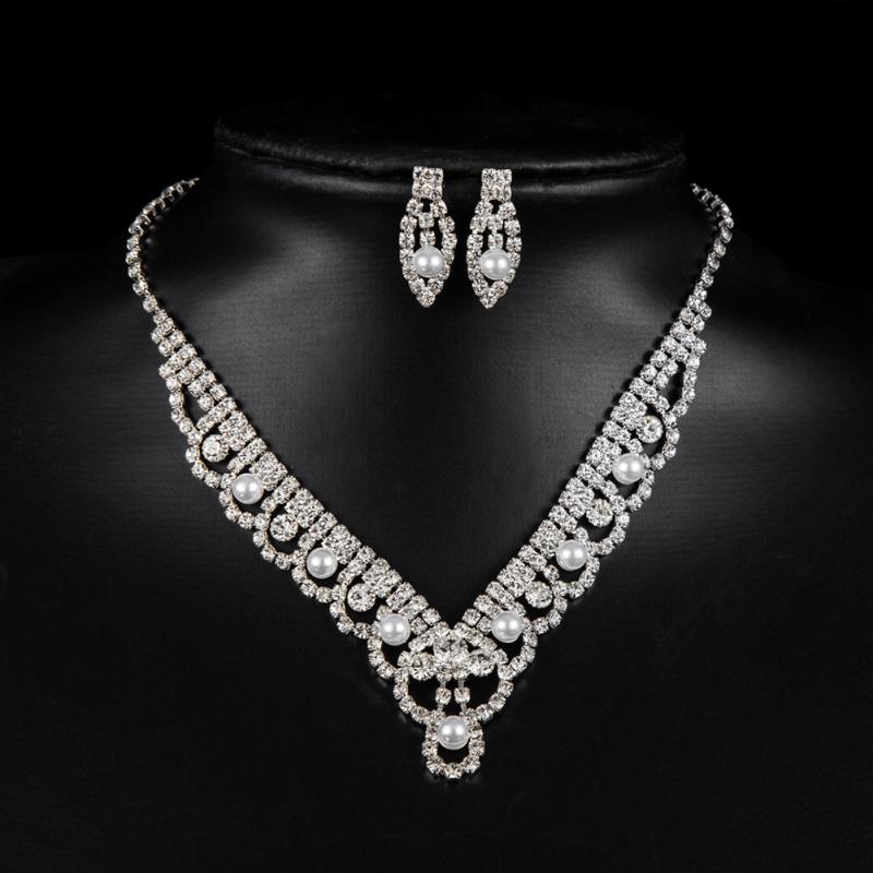 Hot! 2pcs/set Women Bright Luxurious Necklace Earring Set Crystal Diamond Bridal Accessories