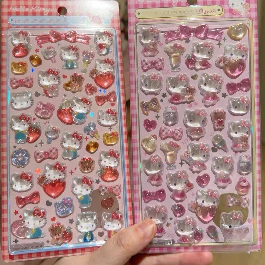 Cute Anime Hellokitty Kuromi Cinnamoroll 3D Sanrio Stickers Transparent Jelly Crystal Decorative Sticker Phone Case DIY Kids Toy