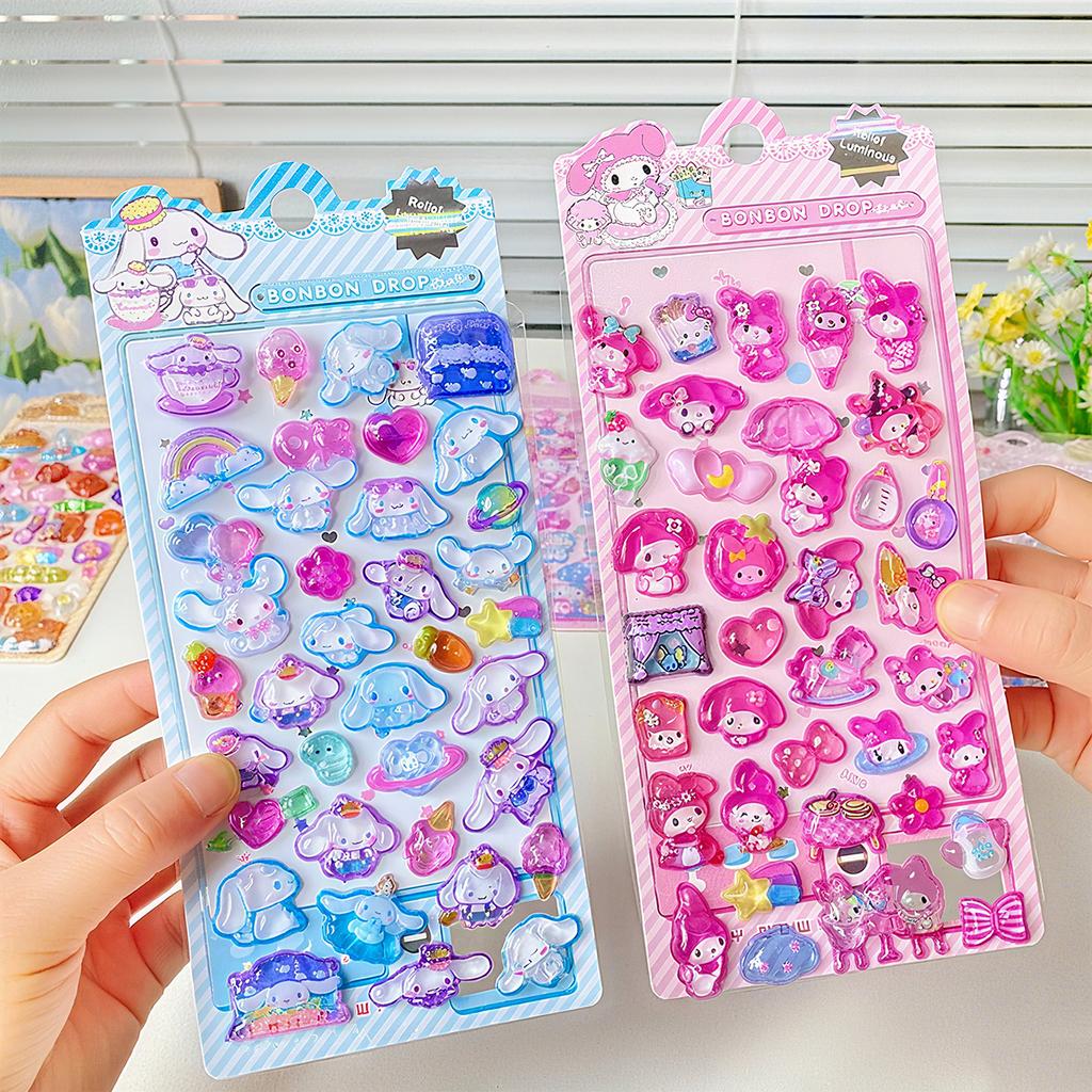 4 Pcs Mix Sanrio Cartoon Stickes Capybara Kuromi 3D Stereo Crystal Sticker Handbook DIY Material Sticker