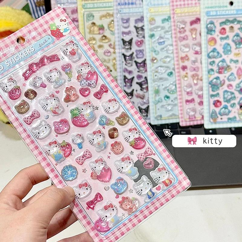 14 Style Anime Kitty Cat Kuromi Cinnamoroll 3D Sanri Stickers Transparent Jelly Crystal Decorative Sticker Phone Case DIY KidToy