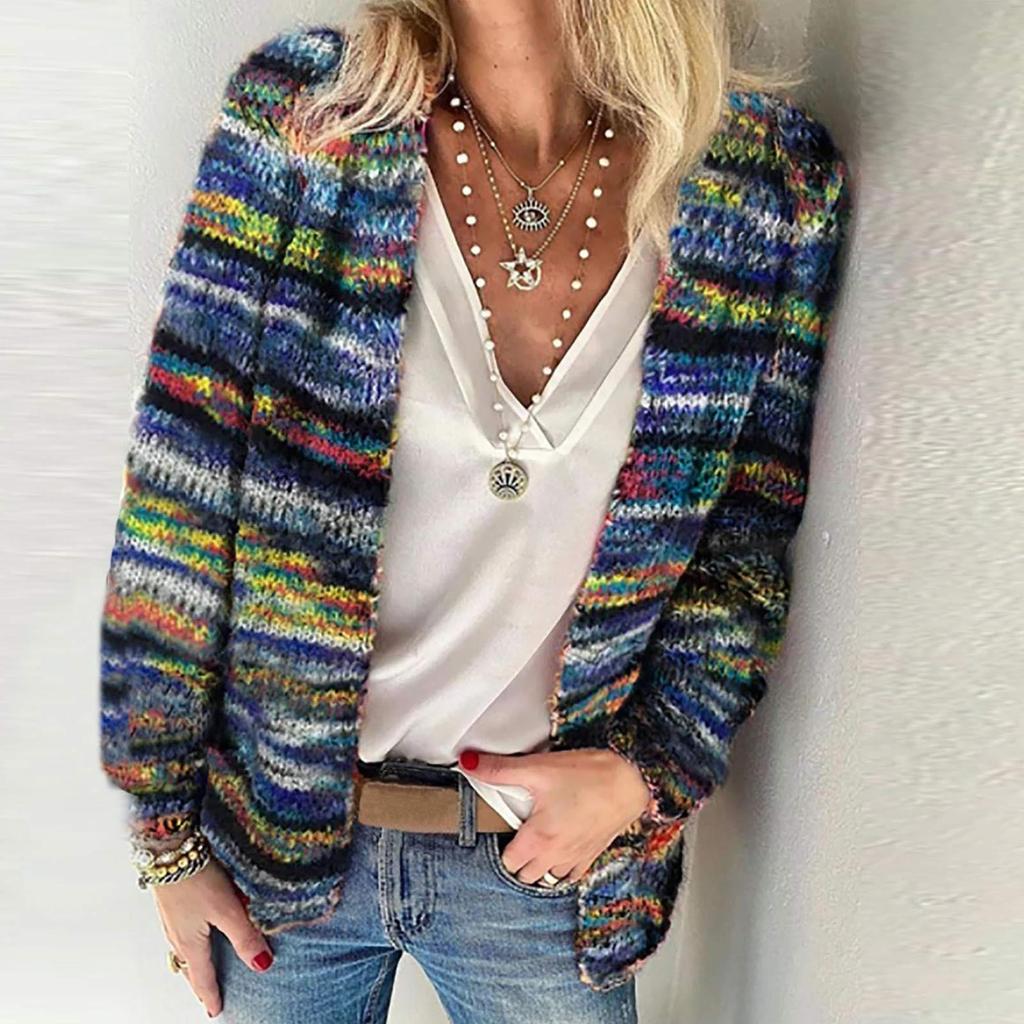 Autumn/winter Women's Shirts Long Sleeve Cardigan Color Printing Jacket For Women Casual Small Jacket