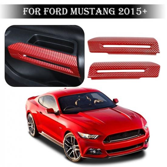2pcs Inner Door Armrest Cover Trim Accessories For Ford Mustang 2015+ Red Carbon