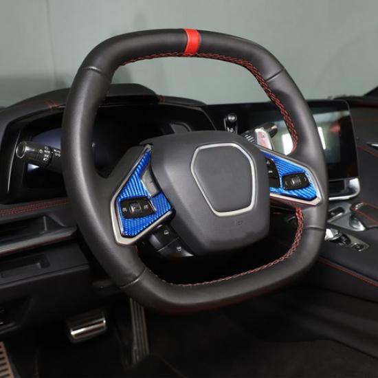 Blue Carbon Fiber Steering Wheel Button Sticker For -2025 Corvette C8