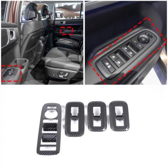 Carbon Fiber ABS Window Lift Panel Switch Cover Trim For Hyundai Santa Fe 2024