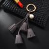 Korean Velvet Tassel Keychain Leather Tassel Pearl Pendant Car Ornaments Female Key Chain Plush Bag Pendant