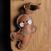 Handmade Leather Gingerbread Man KeyChain Cute Christmas KeyRing Bag Charm Christmas Ornament with Gift Box