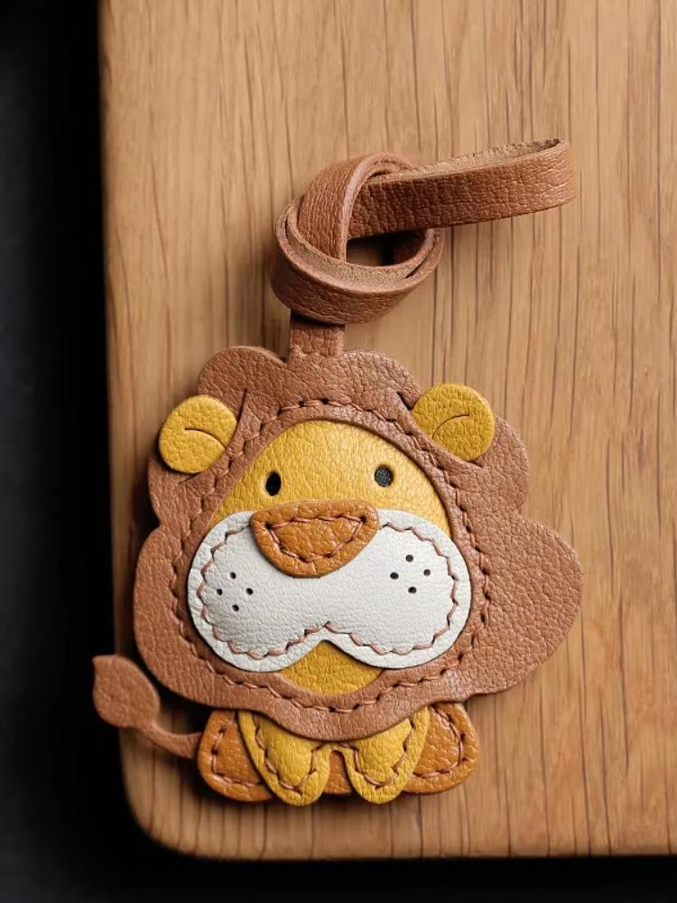 Cow Leather Bag Charm Lion Bags Pendant Car Keychain Trinkets Doll Decorations Backpack Dolls Birthday Gift Bag Accessories