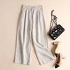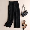 Women Fashion Cotton Linen Solid Color Thin Wide Leg Loose Ninth Pants