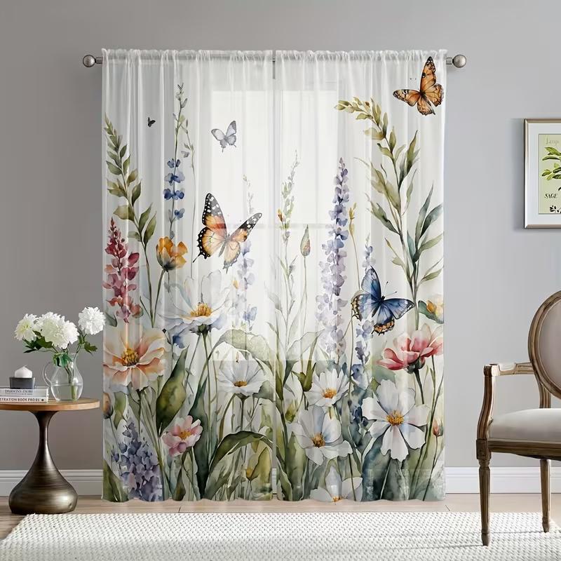 2 Pcs Butterfly Flower Print Curtains,suitable for Bedroom,living Room Kitchen Decoration,home Decoration,window Decoration