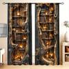 2pcs Magical Vintage Bookcase & Starry Pattern Curtains, Designed for Light Blocking, Premium Material, Suitable for Study,