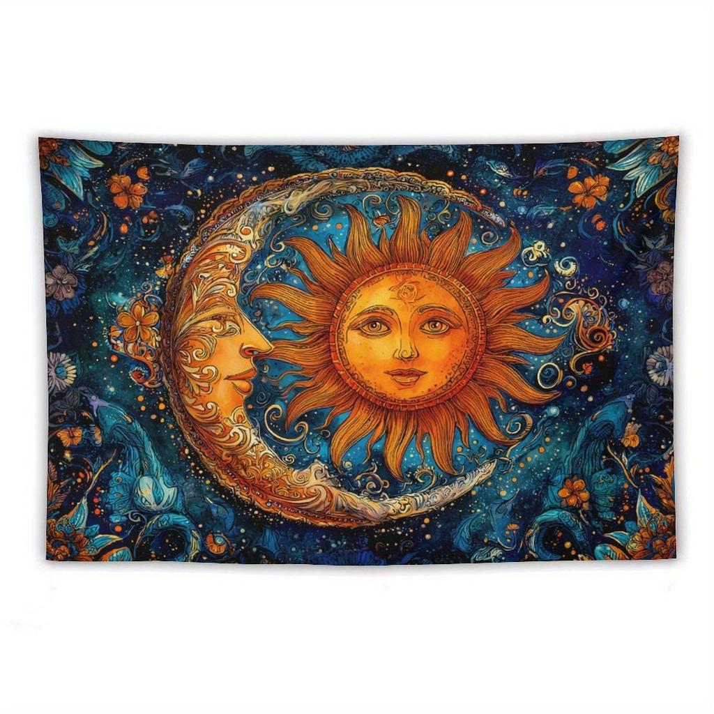 1pc Starry Sun and Moon Tapestry, Polyester Fabric, Machine Washable, Suitable for Bedroom and Living Room Decoration