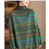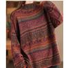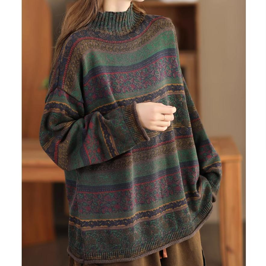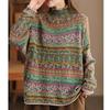Spring Retro Fried Color Printed Sweater Women's Loose Half-high Collar Long-sleeved Cotton Pullover Sweater