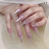 24Pcs Simple Fake Nail With Jelly Glue Butterfly Design Pink White Gradient French Press On False Nails Full Cover Nail Tips