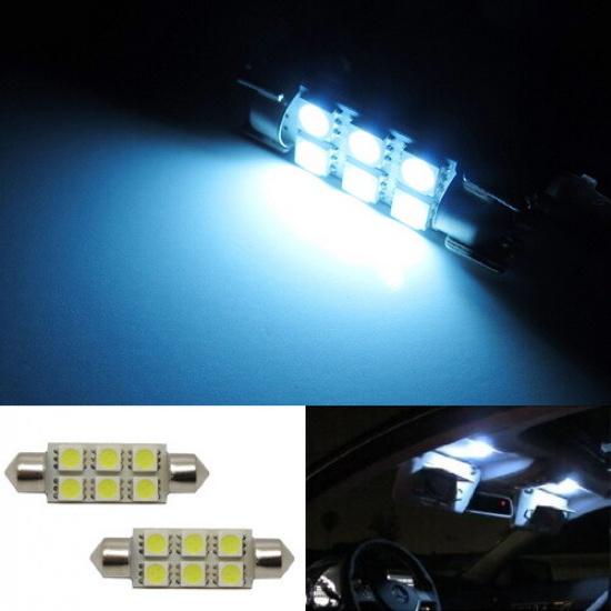 (2) White 6-SMD 39mm 41mm 6411 Festoon LED Visor Vanity Mirror Light Bulbs
